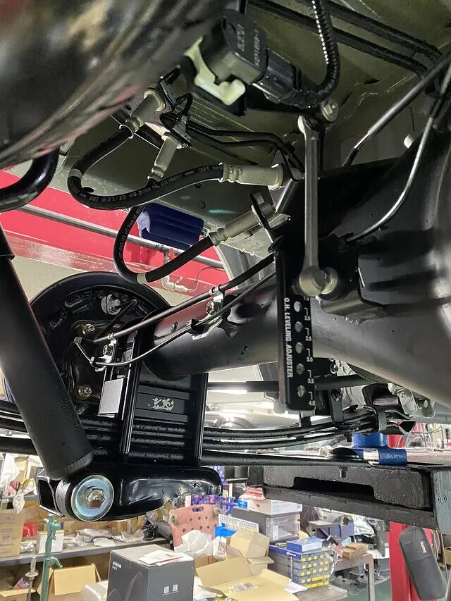 レベライザーロッドの取付位置もダウン量に応じた位置にステーを取り付けました。
