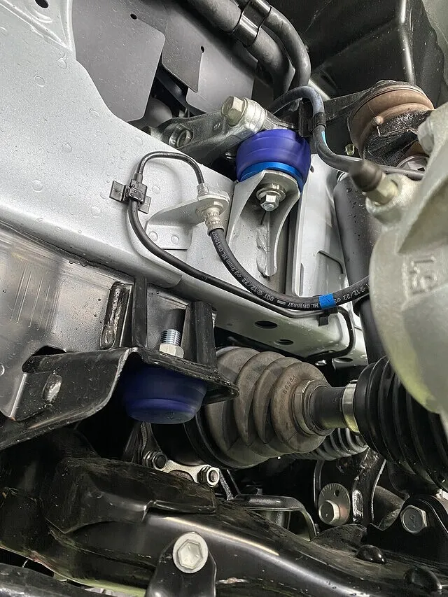 一緒に取り付けました。4WD特有のローダウンをすることでドライブシャフトへの